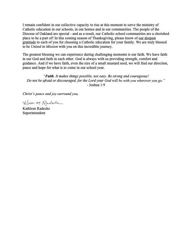Diocese of Oakland Superintendent shares letter with school communities Attached Files Superintendent Communication .pdf