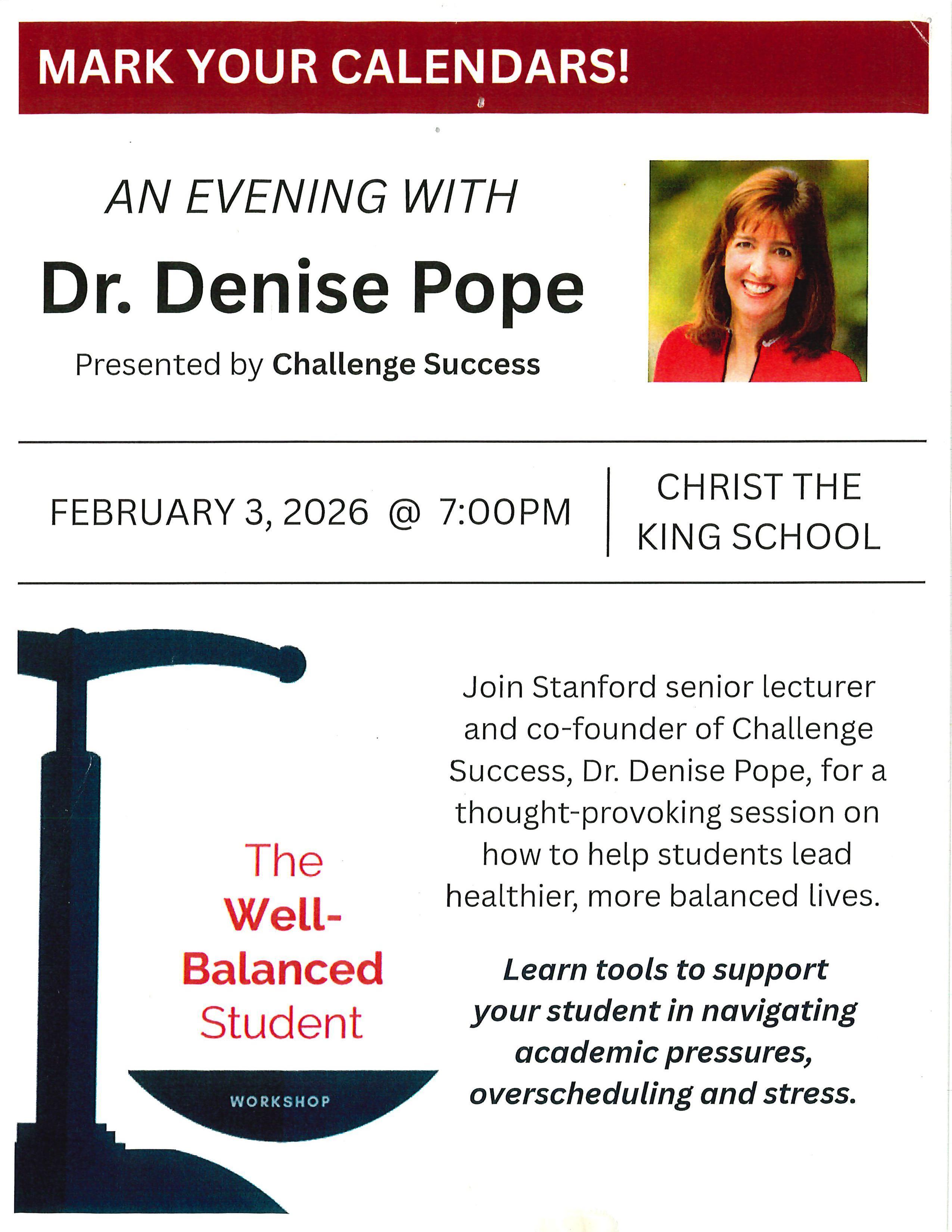Presented by Challenge Success, "The Well-Balanced Student" workshop offers an opportunity to learn tools to support your student. The session focuses on helping students navigate academic pressures, overscheduling, and stress.
