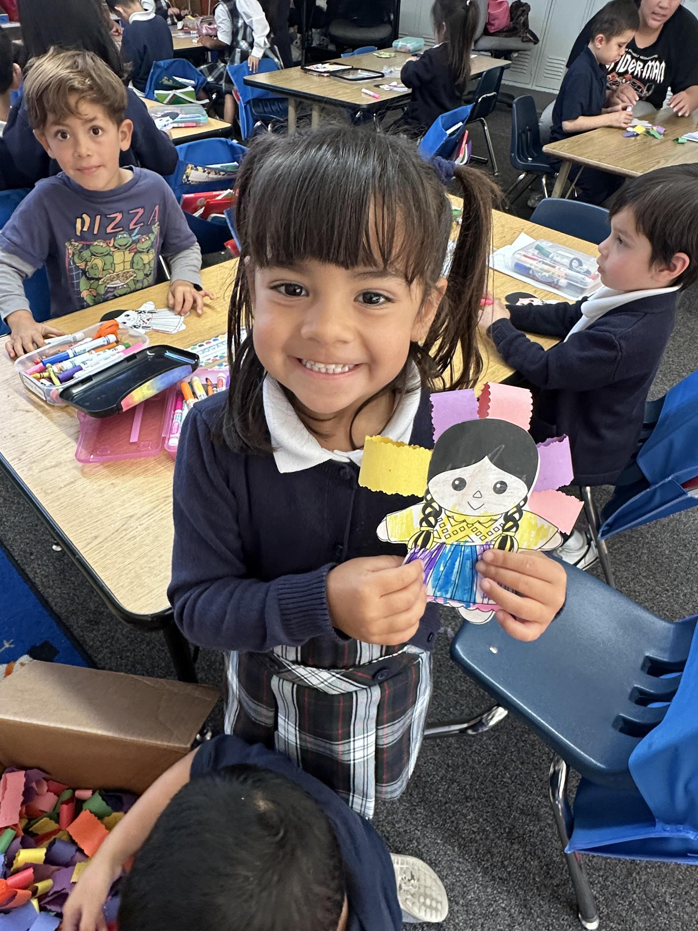 Photos are of Students from TK- 2ND and the Lele Mexican dolls they made. Students learned all about Mexico's independence day and the history behind the famous artisan Lele Mexican dolls.