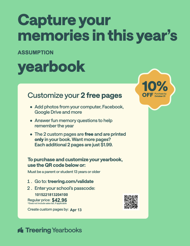 Assumption families, we are announcing a 2-day yearbook flash sale.