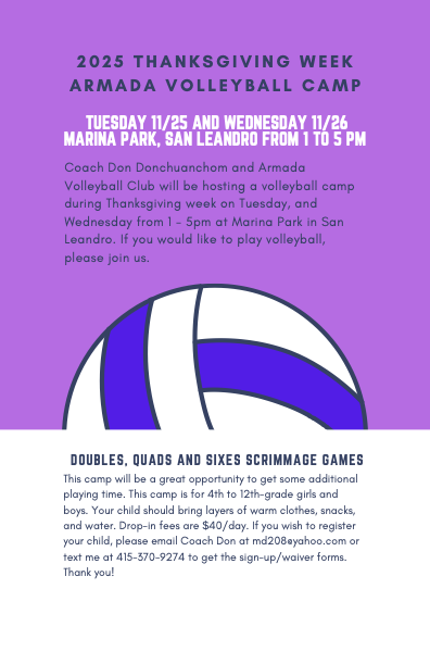 Join Coach Don Donchuanchom and the Armada Volleyball Club for a two-day camp focused on doubles, quads, and sixes scrimmage games! It's the perfect opportunity to sharpen skills and play a ton of volleyball.