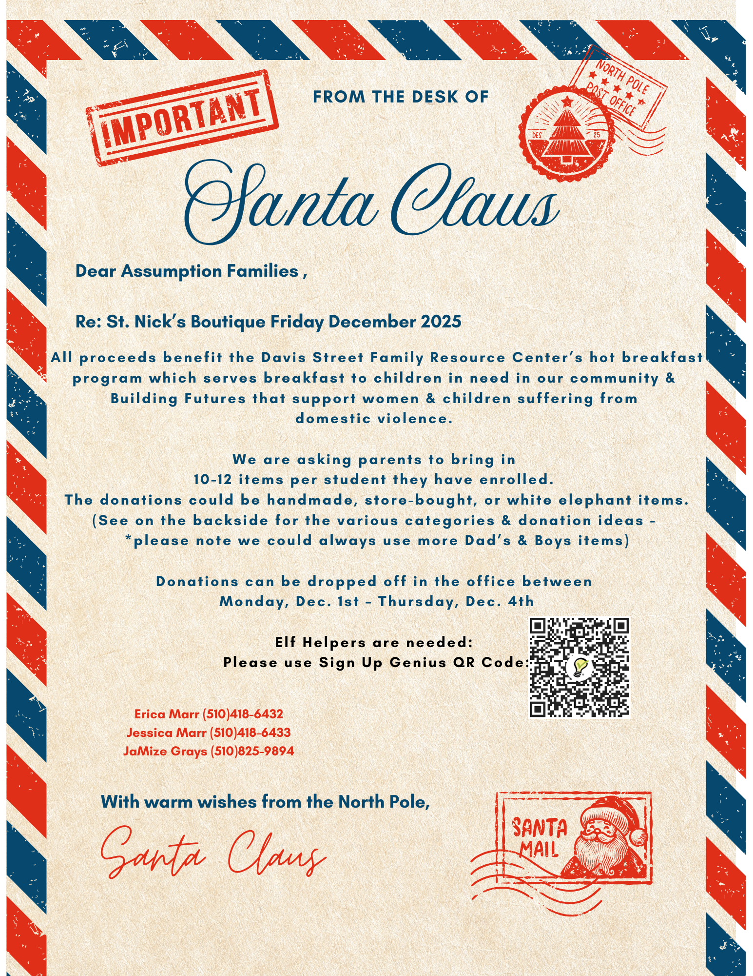 Re: St. Nick's Boutique Friday, December 5th, 2025