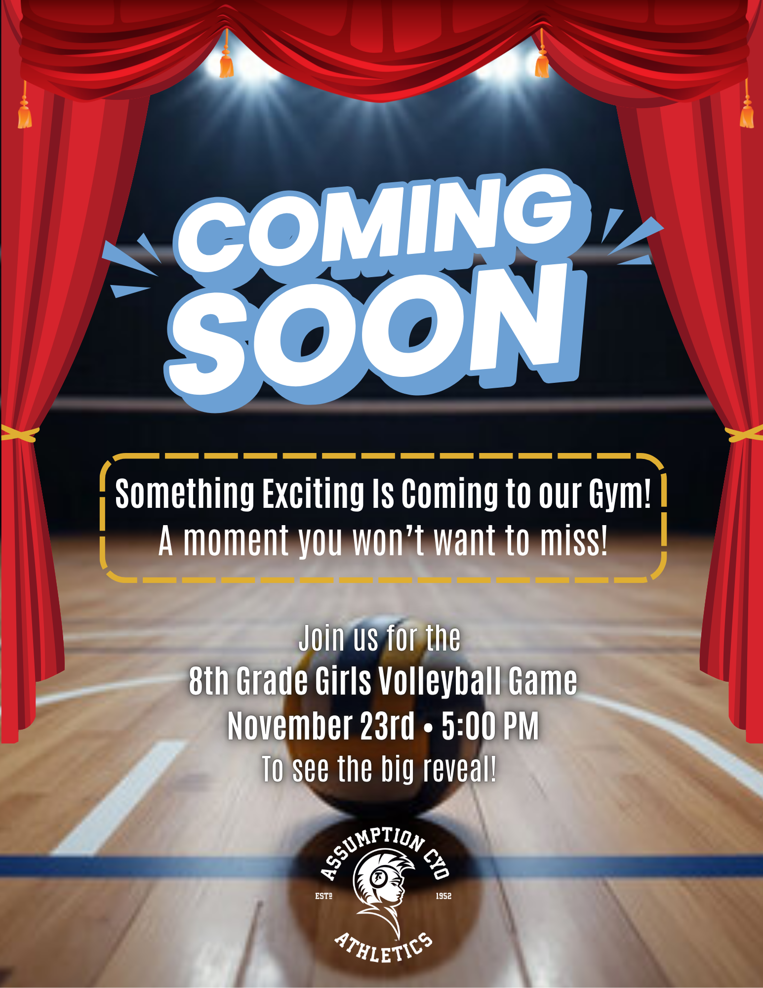 Join CYO at the 8th Grade Girls Volleyball Game on November 23rd at 5:00 PM for a special mystery reveal.