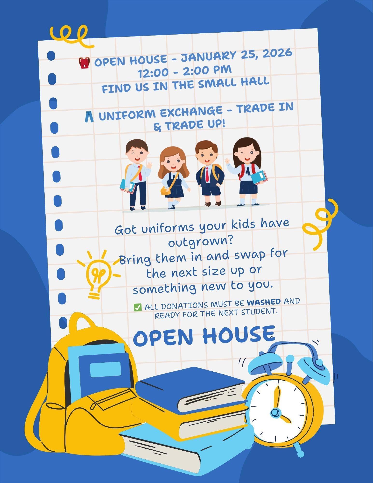 Does your student have a closet full of uniforms they’ve already outgrown? We have the perfect solution! Join us for our upcoming Uniform Exchange during the Open House. This is a wonderful opportunity to swap those outgrown items for the next size up or find something "new to you" for the coming months.