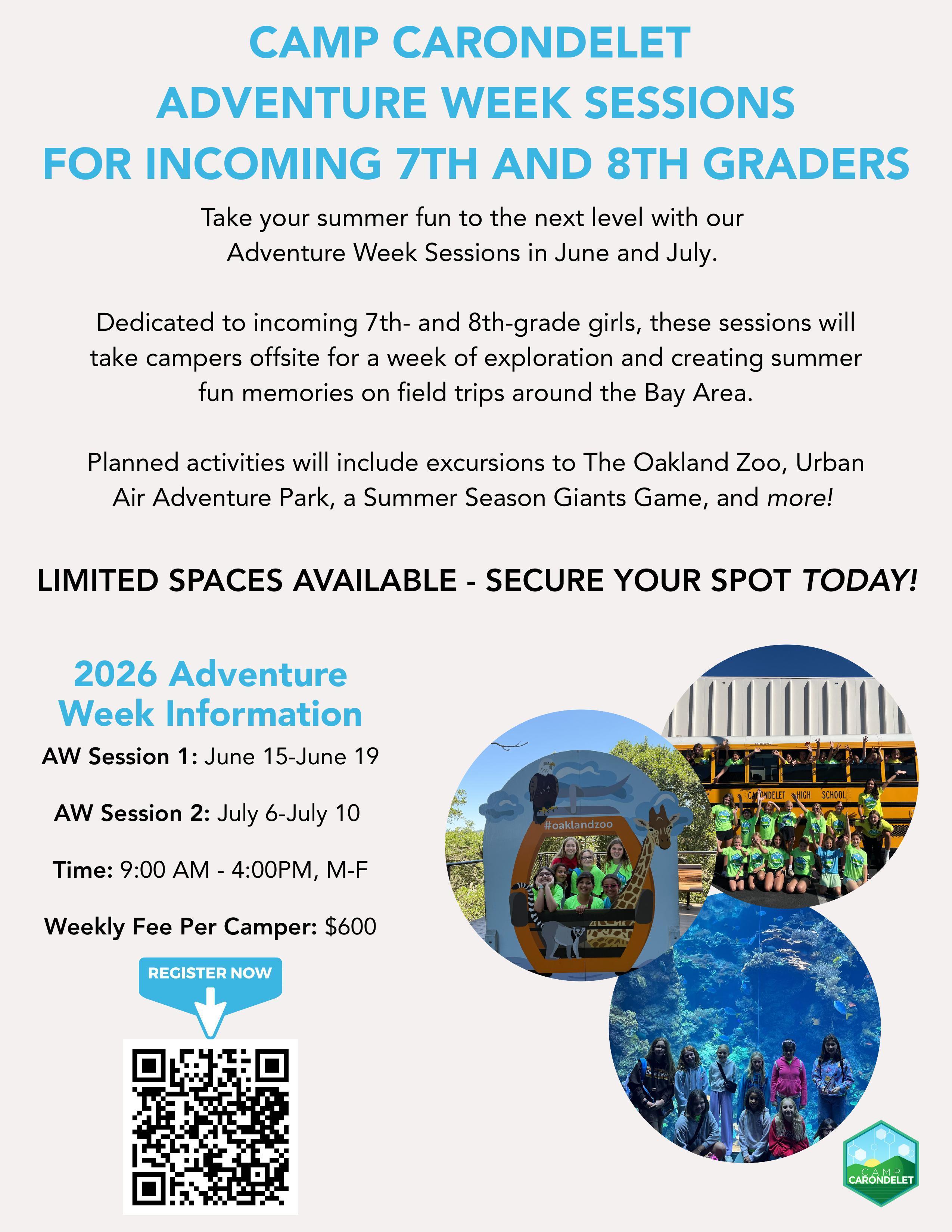 Limited spaces are available. To secure a spot, please register today at the following link: Camp Carondelet Registration.