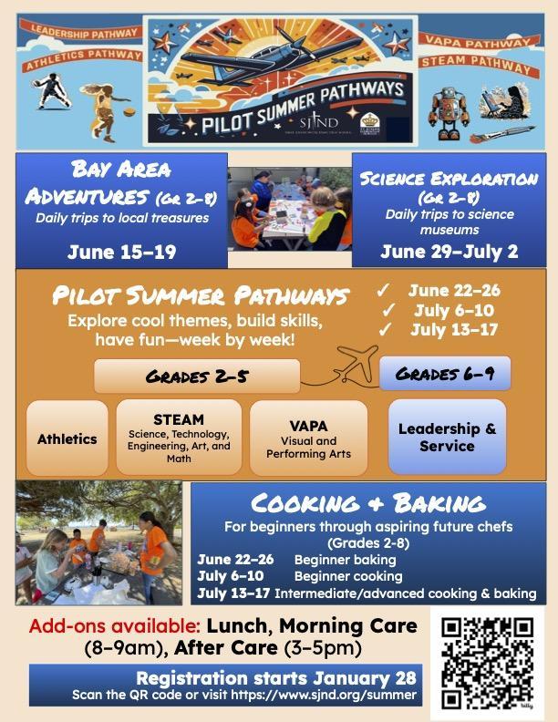 Ready to Register? Enrollment is handled directly through SJND. You can scan the QR code on the flyer or visit www.sjnd.org/summer to sign up.