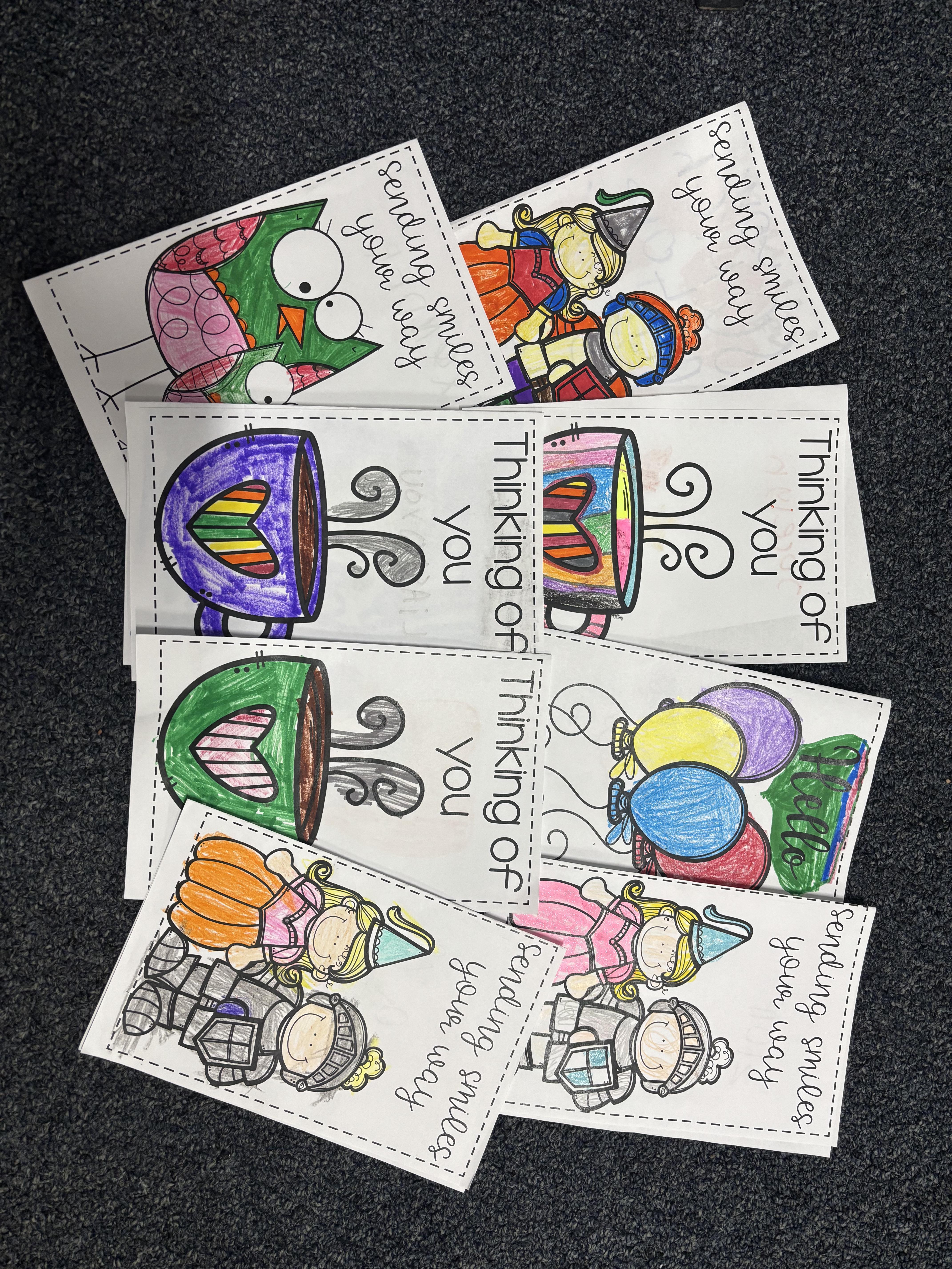 As they worked, students talked about being kind and thoughtful, carefully coloring pictures and adding cheerful messages for the seniors who would receive their cards. One sweet message captured the spirit of the project perfectly: “Nice to meet you. I love you.”