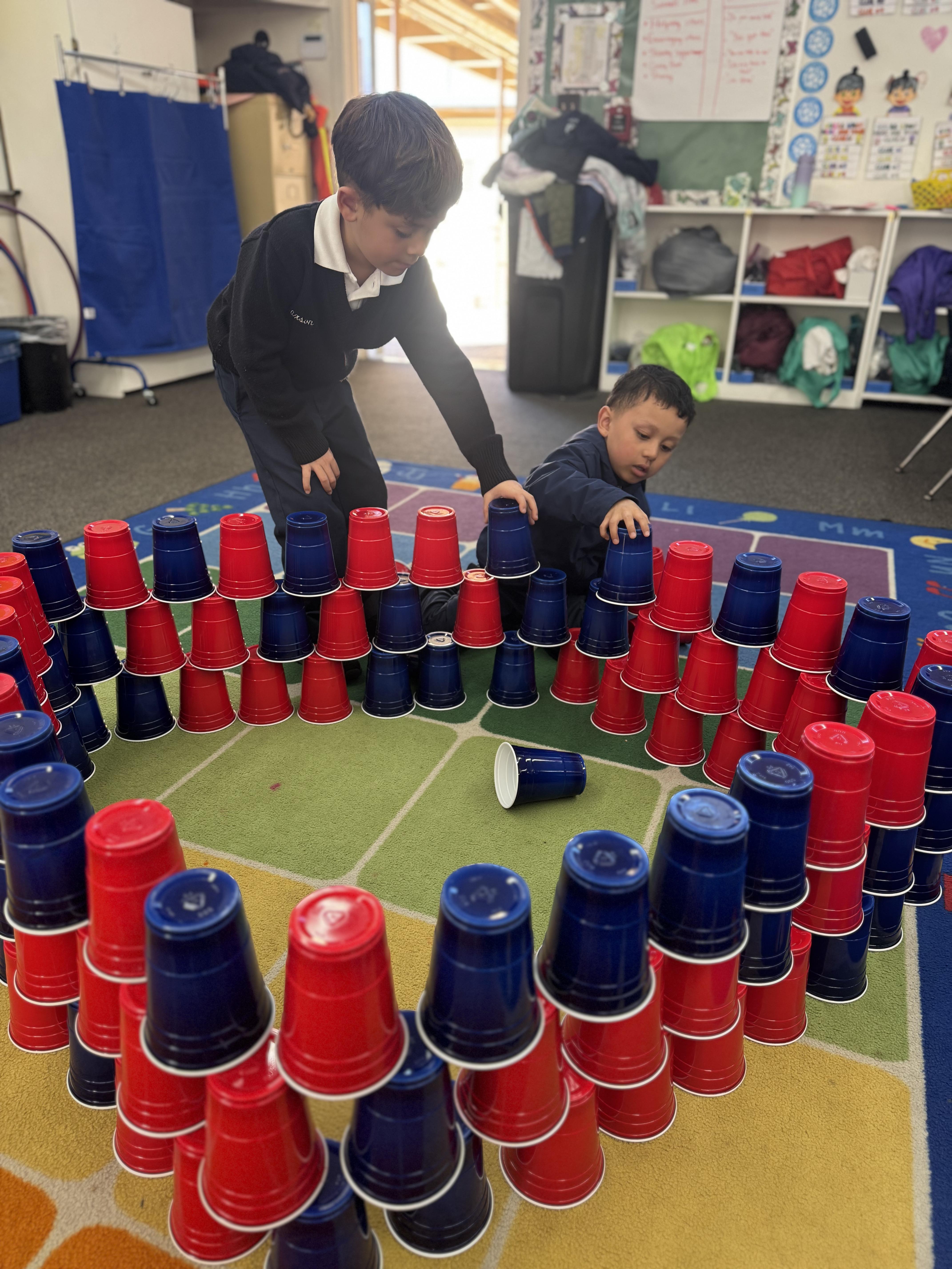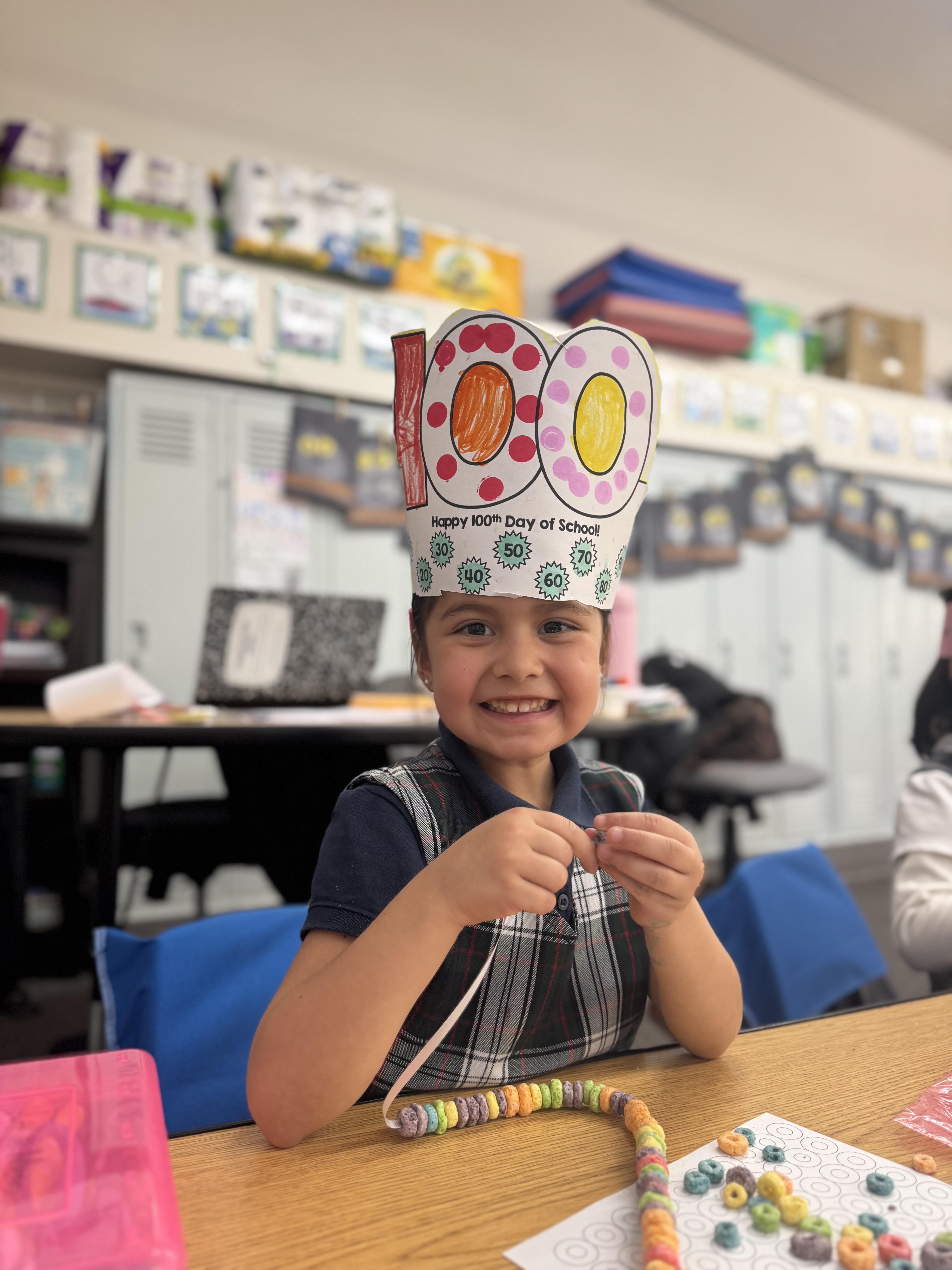 Students counted out 100 Fruit Loops to create colorful necklaces, designed 100 gumball art projects, and worked collaboratively to build structures using 100 cups. Each activity encouraged counting, problem-solving, creativity, and teamwork, all while making learning fun and meaningful.
