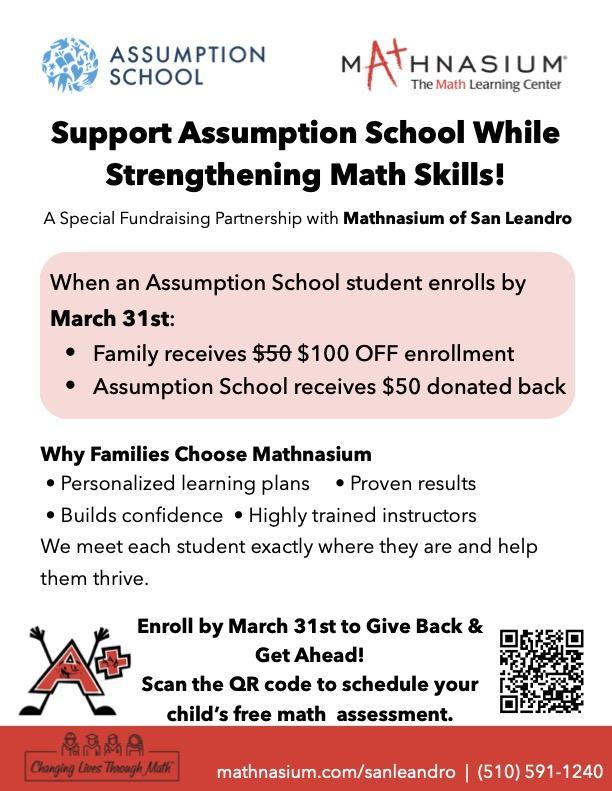 For Assumption School: Mathnasium will also donate $50 back to Assumption for every student who enrolls.