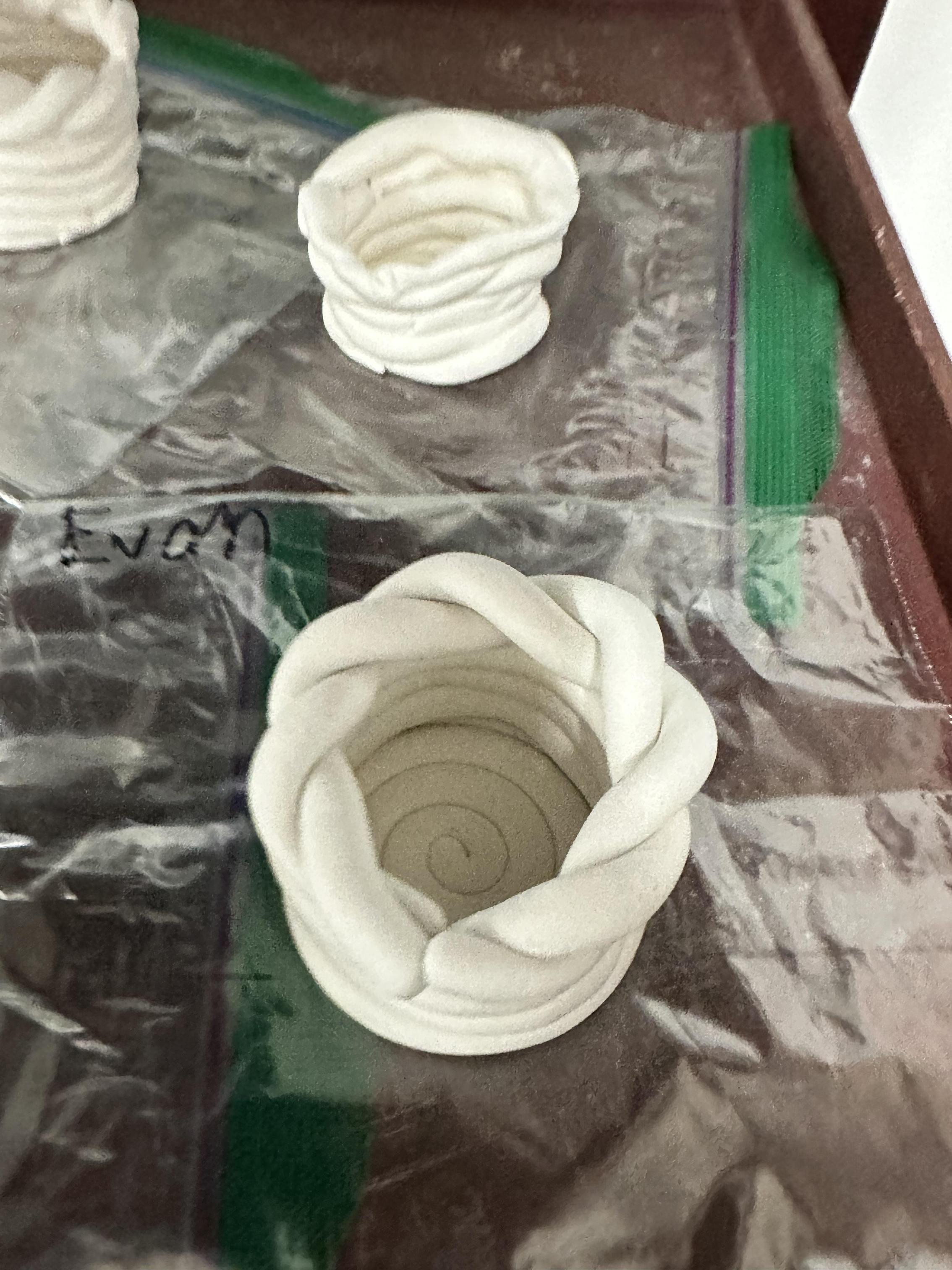 Students are currently building "Memory Cauldrons" using a coil technique. To honor Watkins’ style, students were instructed to keep every clay rope visible rather than smoothing them out, as each layer represents a memory. The pots feature a spiral base and a twisted rope rim.