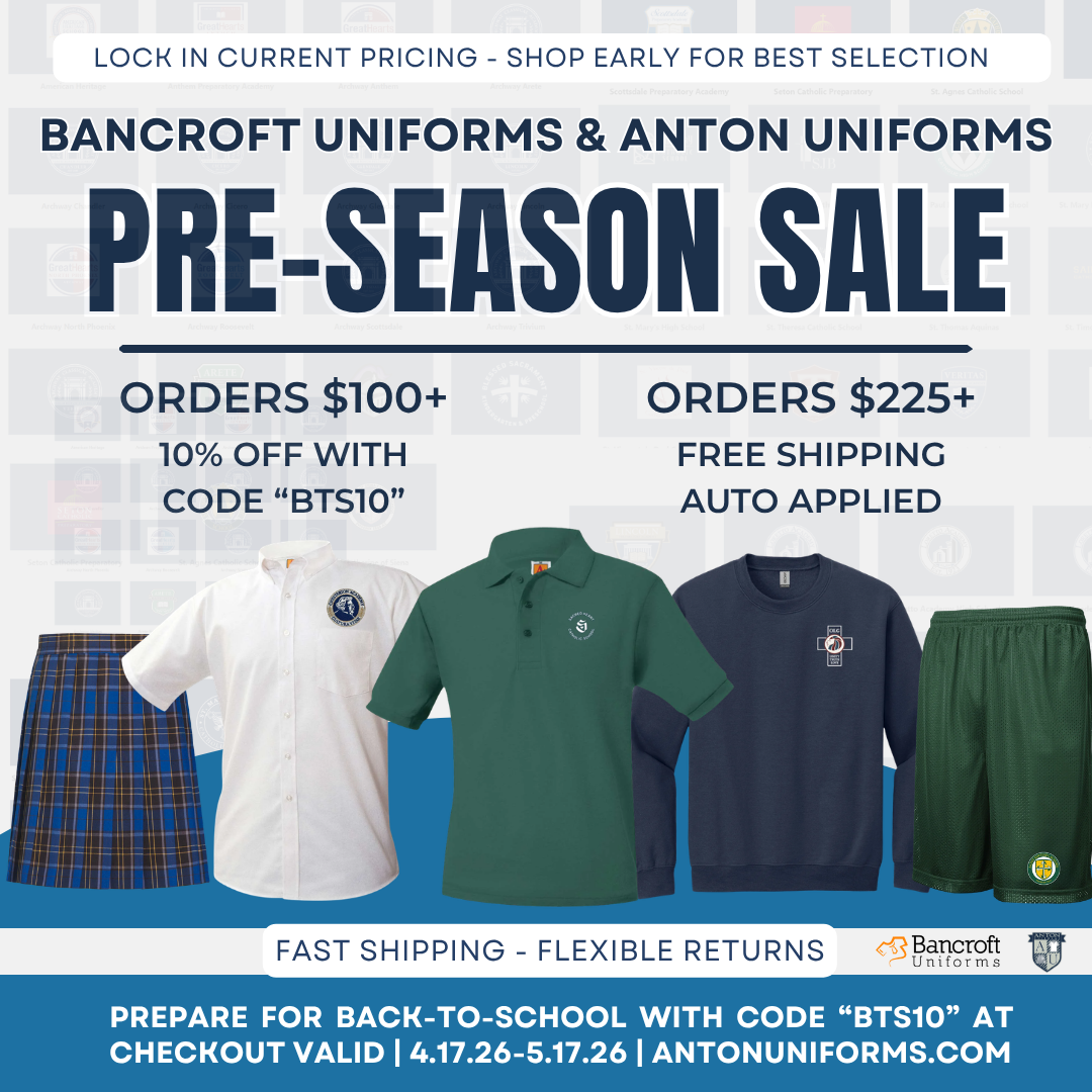 Beat the back-to-school rush! We are pleased to share the Bancroft Uniforms & Anton Uniforms Pre-Season Sale details. This is your opportunity to secure 2026 pricing and ensure your student has everything they need for the upcoming school year.