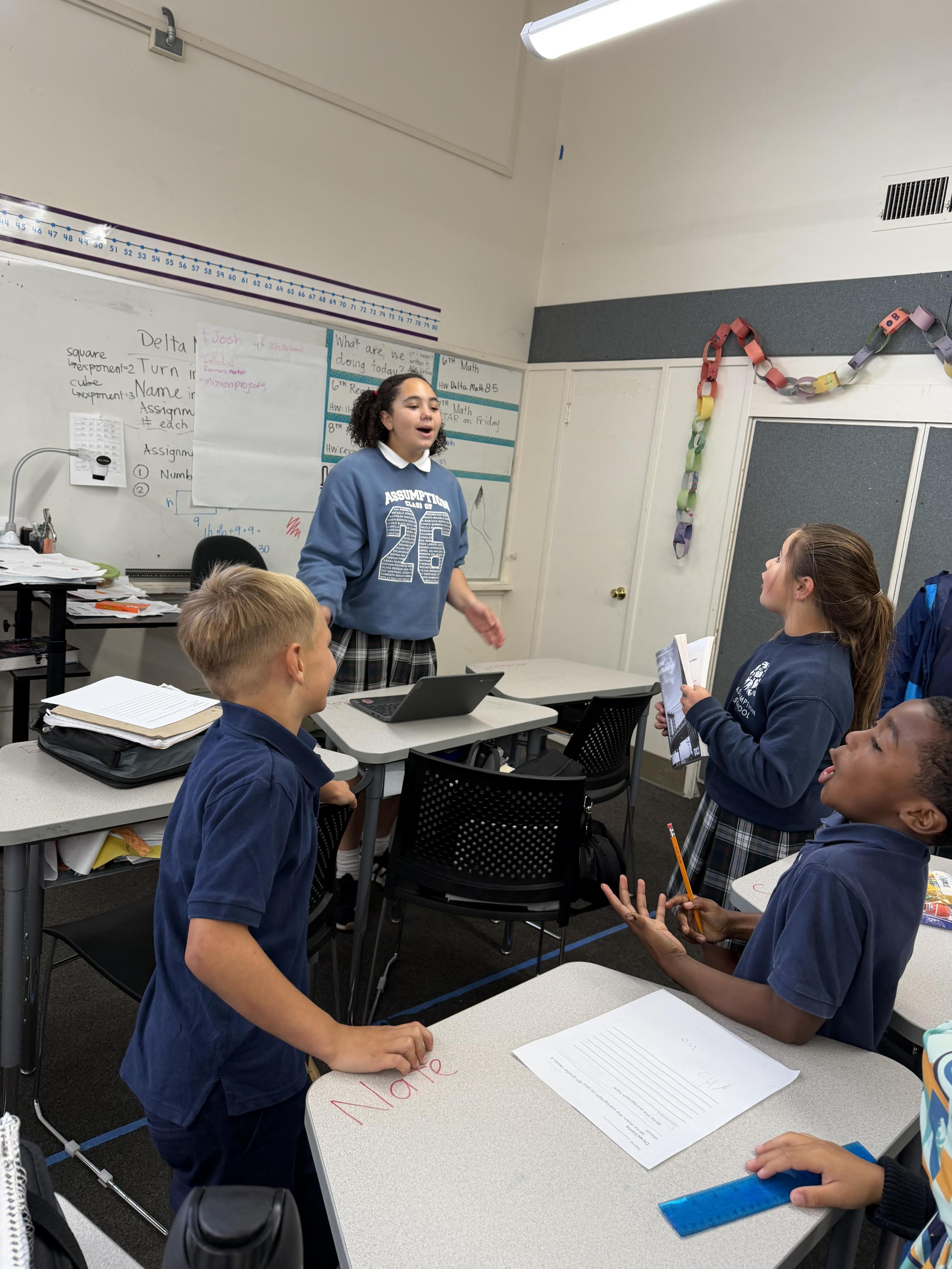 The activity, which explores the unique ways all students learn, was a good activity. Thanks to the dedicated preparation with Mrs. Bass, our 8th-grade leaders demonstrated clear leadership and growth as they facilitated complex ideas about learning differences and community responsibility. The younger students responded well, gaining a glimpse into the concept that being "fair" means everyone gets what they need to succeed, not that everyone gets the exact same thing.