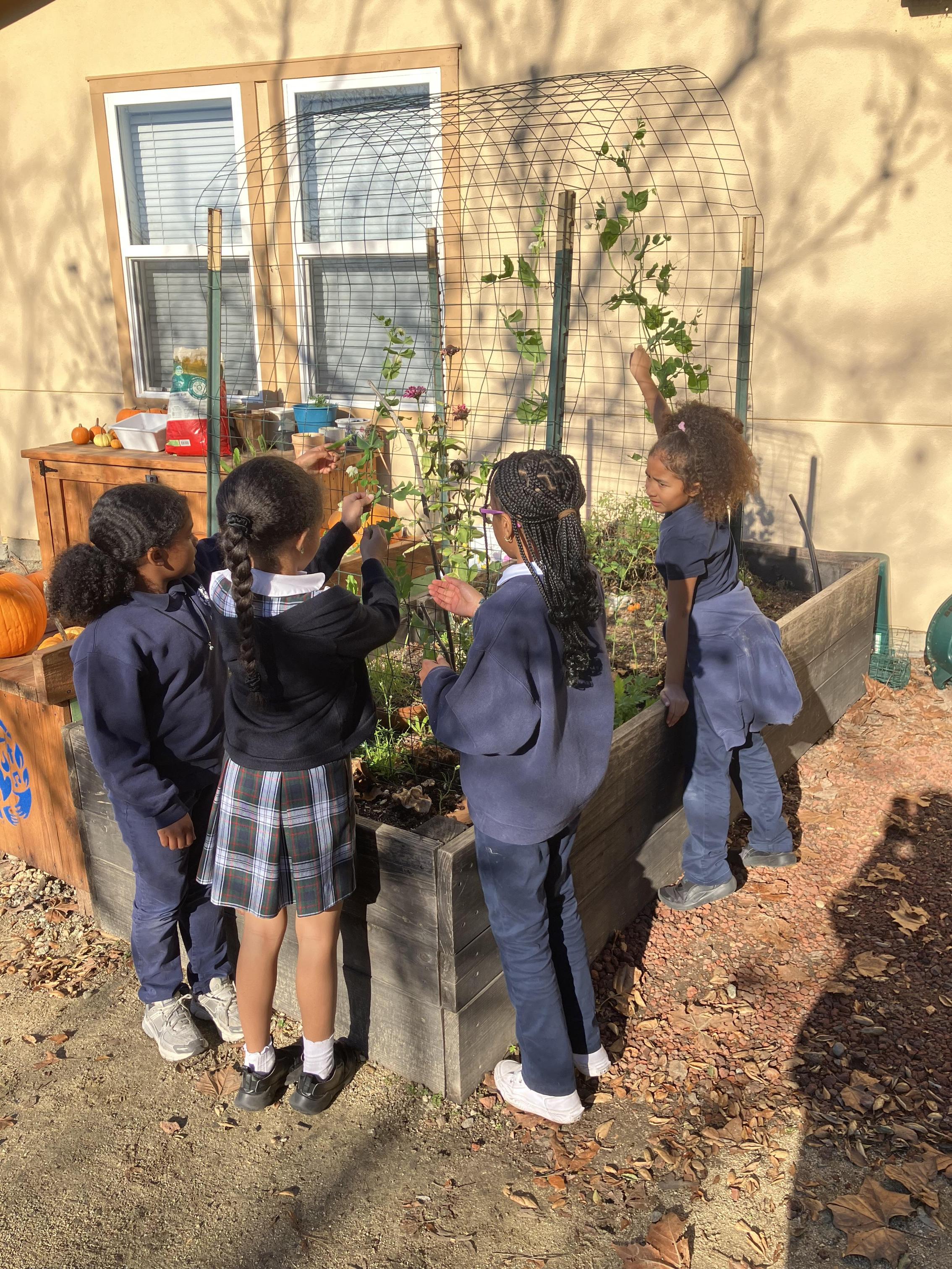 Other school eco-projects at Assumption are happening closer to the classroom, in the garden and animal dwellings. Each grade has scheduled time for small groups to plant, water, feed chickens and rabbits, deliver food scraps to the composter, and observe the bees that live at the school. Mrs. Wolf also brings special visitors from her animal rescue and education business called Critter Quest, such as a chinchilla, corn snake, tortoise, and tarantula. These sessions are integrated as part of science lessons, writing assignments, and other interdisciplinary projects. Currently, students are collecting seeds from the garden to donate back to the San Leandro and Castro Valley seed libraries. “We got the seeds to plant our garden from the libraries, and now we’d like to have it go full circle,” Mrs. Wolf explained. “We want the kids to experience that giving back is rewarding.”